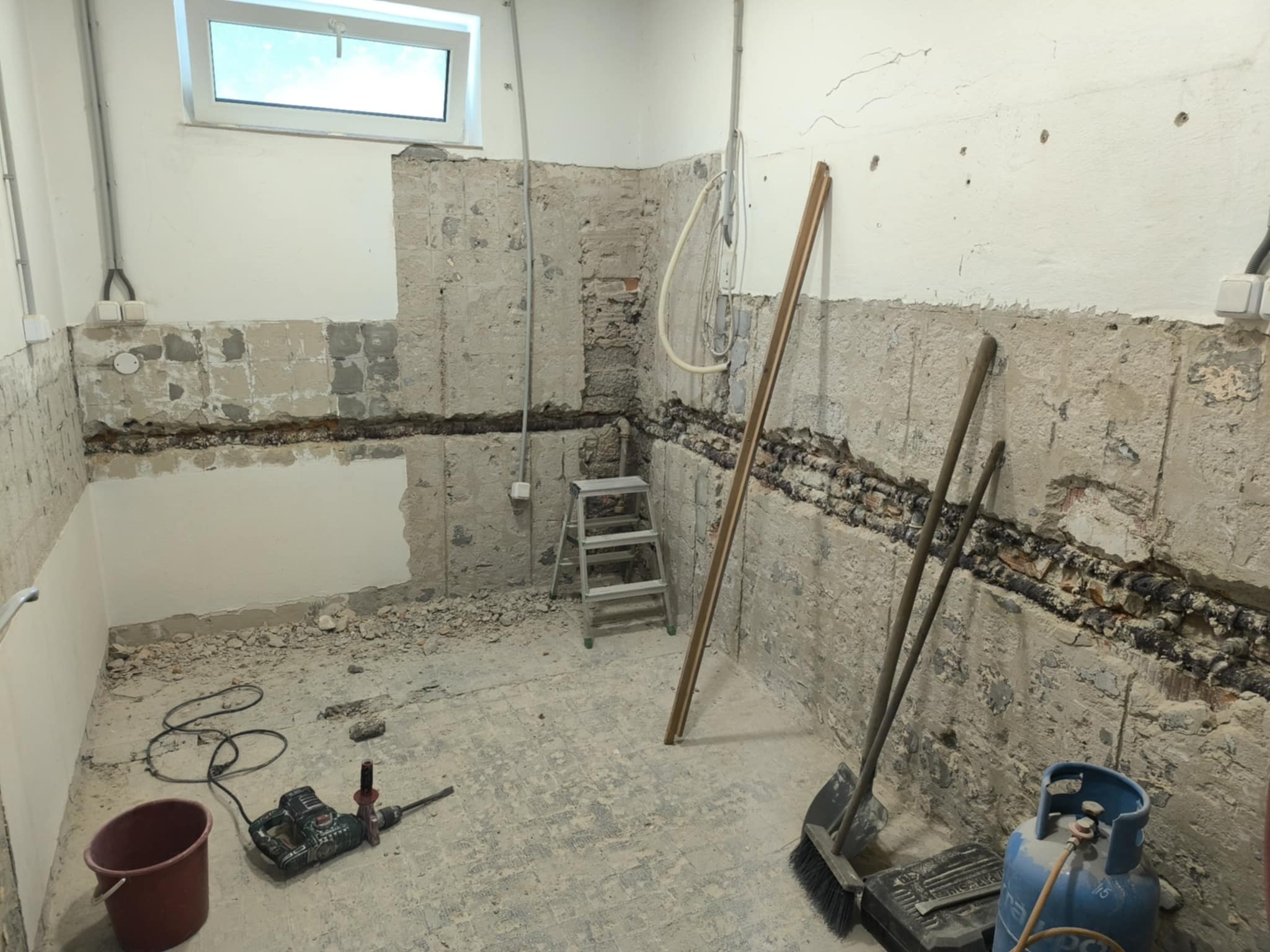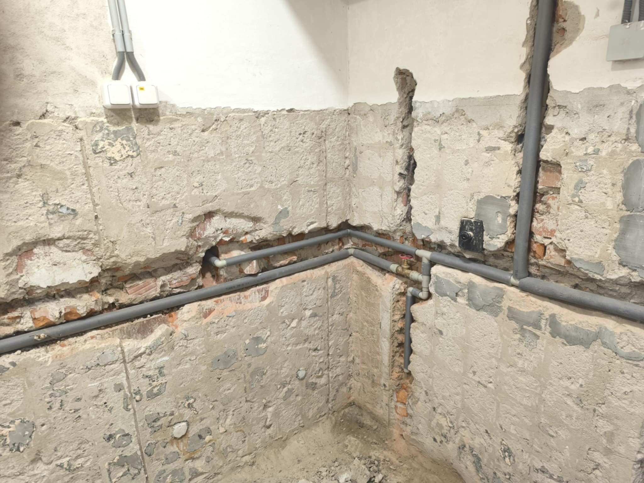 Nová elektroinstalace. Původní elektroinstalace už nesplňovala bezpečnostní požadavky a její stav byl žalostný. Proto jsme se rozhodli pro kompletní výměnu starých hliníkových rozvodů za nové měděné. Rekonstrukce zahrnovala nejen výměnu kabelů, ale také instalaci nových zásuvek, vypínačů a modernizaci rozvaděče. Po dokončení této části jsme se postarali o opravy vysekaných stěn a vymalování prostor.